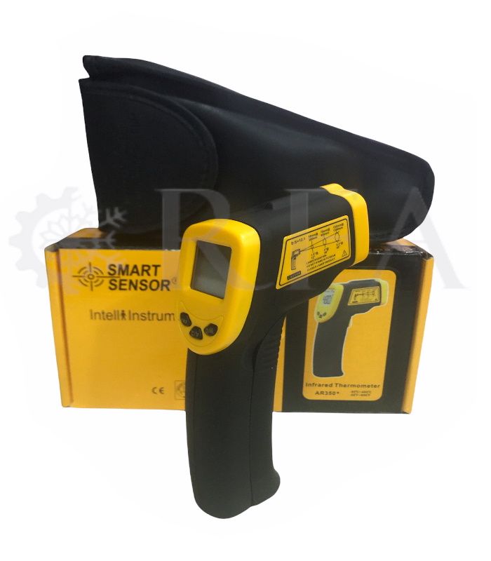El diseño más básico consiste en una lente para enfocar la energía infrarroja (IR) en un detector, que convierte la energía en una señal eléctrica que se puede mostrar en unidades de temperatura después de ser compensada por la variación de temperatura ambiente.